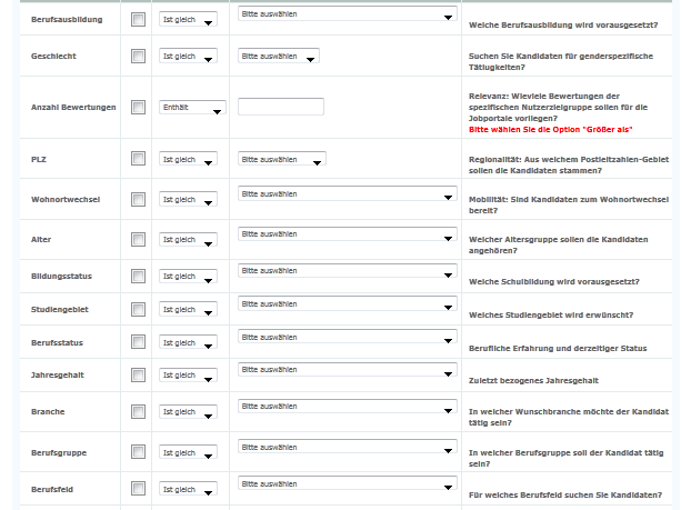 Die richtige Auswahl eines geeigneten Jobportals beeinflusst die Effektivität Ihrer Recruitingmaßnahmen und reduziert Streuverluste bei Medienplanung und Anzeigenschaltung. Nutzen Sie für Ihre Entscheidung die Bewertungen von über 14.500 Bewerbern, d.h. Nutzern von Jobportalen. Sie geben an, wen Sie suchen und der Jobportal Profiler zeigt Ihnen die am besten passenden Jobportale für Ihre Anzeigenschaltungen.