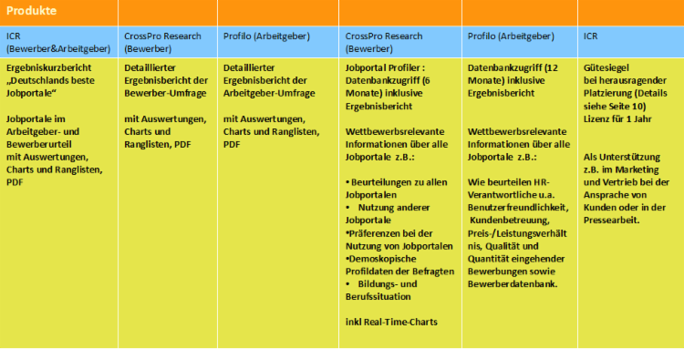 Eine Übersicht der Produkte mit denen Jobportalbetreiber ihre Wettbewerbssituation erkennen und verbessern können, finden Sie hier: