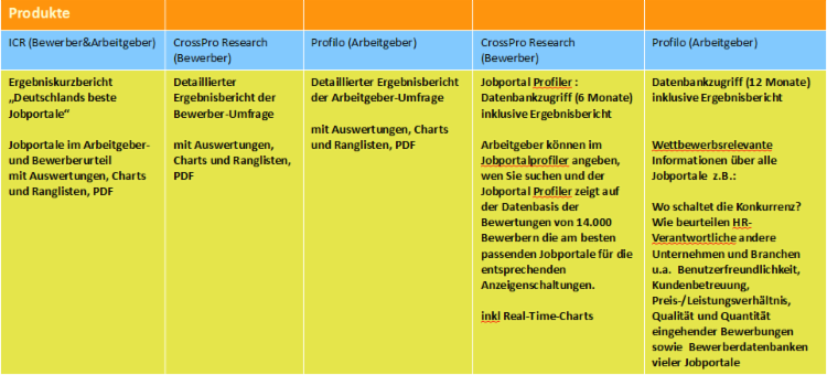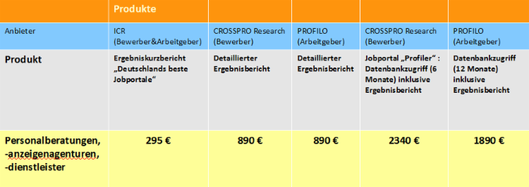 Ihre Bemühungen um eine Optimierung der Wirksamkeit der Online-Stellenanzeigen unterstützen wir mit folgenden Produkten: